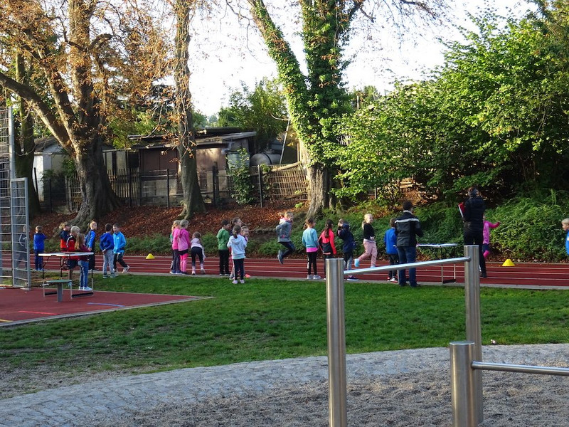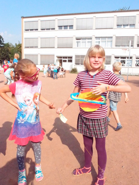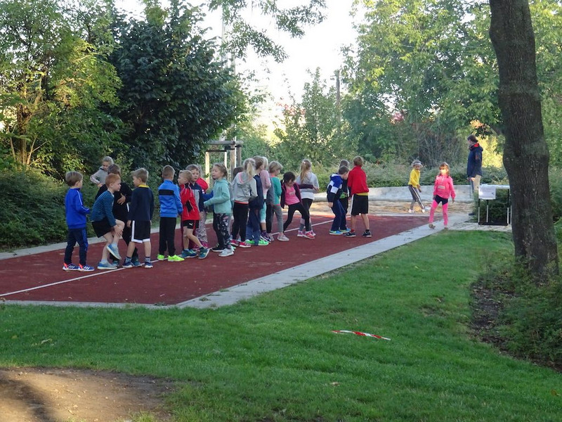 Zum Kindertag 2018 wetteiferten die Schülerinnen und Schüler der Klassen 1 und 2 sowie die Schulanfänger unseres Kooperationskindergartens "Pusteblume" nach einer ordentlichen Erwärmung um den Titel "Sportlichste Klasse/Kita-Gruppe". Beim Seil springen, Ziel werfen, Tor schießen und Ausdauerlauf konnten Punkte gesammelt werden. Während die Wettkampfrichter die Sieger ermittelten, gab es wieder die Wasserstaffel bzw. einen Hindernisparcour in der Turnhalle. Herzlichen Glückwunsch dem sportlichsten Mädchen, dem sportlichsten Jungen und der sportlichsten Klasse! Zum Abschluss gab es noch ein leckeres Eis.