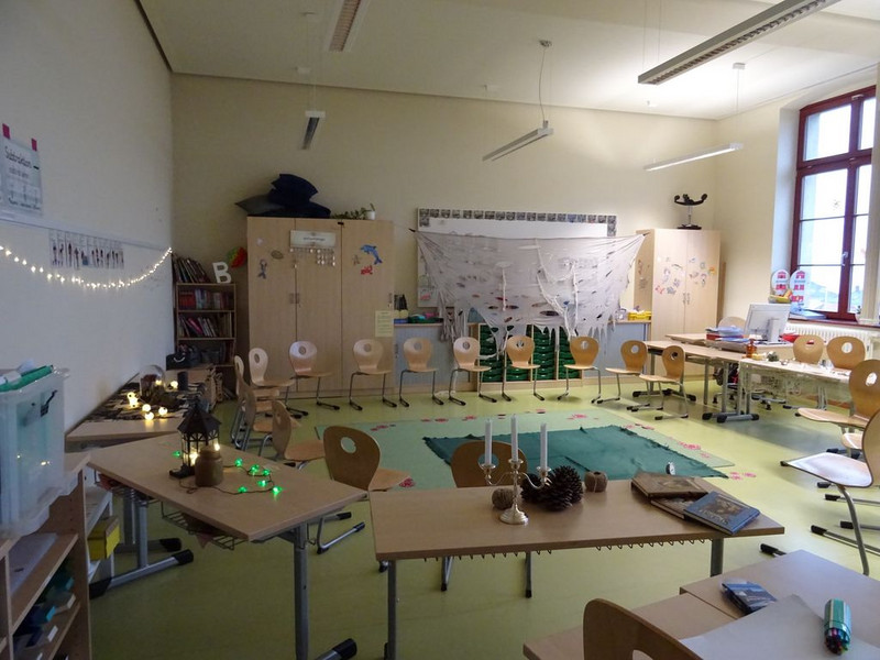 Neben dem Kennen lernen von Laubbäumen (Sachunterricht), dem Konstruieren, Herstellen und Experimentieren mit Windmühlen (Werken), der aktionsbetonten Mandalagestaltung (Kunst), dem Verklanglichen von Themen und Bildern (Musik) betteten sich die anderen Unterrichtsfächer in die Herbstthematik ein.