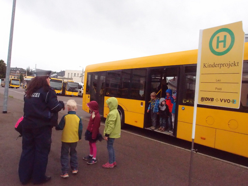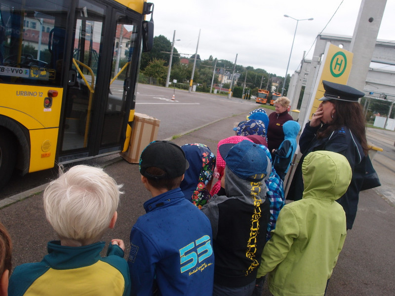 Bereits zum dritten Male fand für unsere Erstklässler ein Busfahrtraining statt. Gemeinsam mit der Polizistin, Frau Wirth, und dem Team von den Dresdner Verkehrsbetrieben erfuhren die Schülerinnen und Schüler, wie man sich richtig an der Haltestelle, beim Ein- und Aussteigen sowie während der Fahrt verhält.