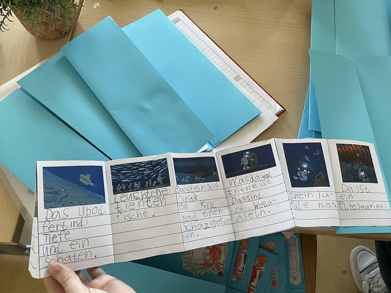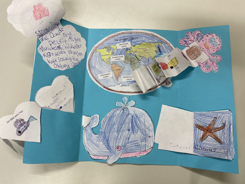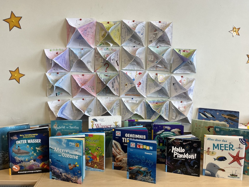 In der Woche vom 17. bis 21. März 2025 stand das durch die Kinder abgestimmte Thema "Wasserwelten" im Mittelpunkt des Projektunterrichtes. Unter der Berücksichtigung verschiedener Perspektiven des Sachunterrichtes lernten, entdeckten und forschten die Schülerinnen und Schüler u. a. zur Entstehung der Ozeane, zu den Schichten der Ozeane, zur Geschichte der Seefahrt, zum Wert sauberen Trinkwassers, zur Verschmutzung der Weltmeere oder zu Meerestieren. Am Donnerstag fanden im Schulhaus zahlreiche Experimente rund ums Wasser statt: tanzende Weintrauben, Lavalampen oder Osmose sind nur einige Beispiele hierfür. Jede Klasse unternahm auch einen Ausflug. So wurde u. a. die Kläranlage zum Tag des Wassers besucht, Wissenswertes entlang des Krötenwanderweges erfahren oder Müll an den Ufern heimischer Gewässer gesammelt. In den nächsten Tagen werden die gezüchteten Salzkrebse mit der Lupe noch genau betrachtet. Vielen Dank an die Arbeitsgruppe und für die Unterstützung einzelner Elternexperten.