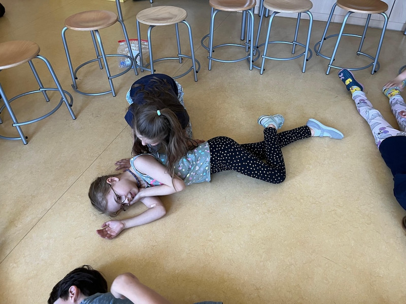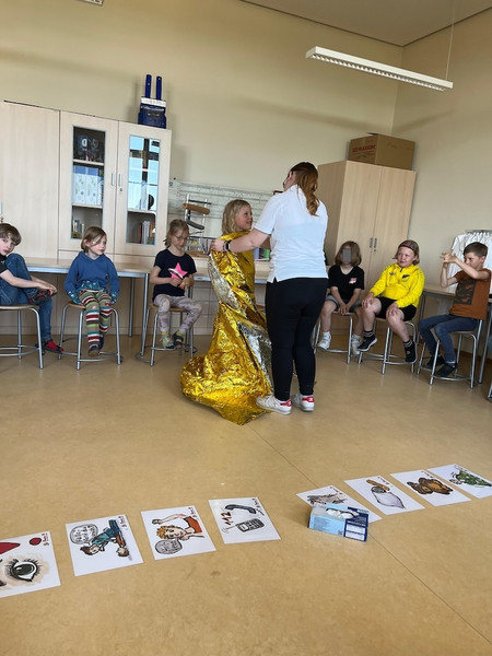 Am 15. und 17. Mai 2024 hatten 4 Klassen die Möglichkeit, am Kurs "Ersthlefer von morgen" teilzunehmen. Gemeinsam mit der Ausbilderin der Johanniter Unfallhilfe Dresden übten die Kinder u. a. das Absetzen eines Notrufes, die stabile Seitenlage oder einfache Verbände.