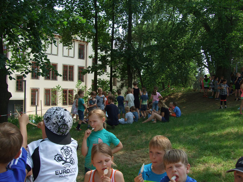 Zwischendurch spendierte der Hort der Schule allen Kindern ein leckeres Eis. Zum Mittag wurde im Freien gegrillt. Ein Dank auch an die Grillmeister.