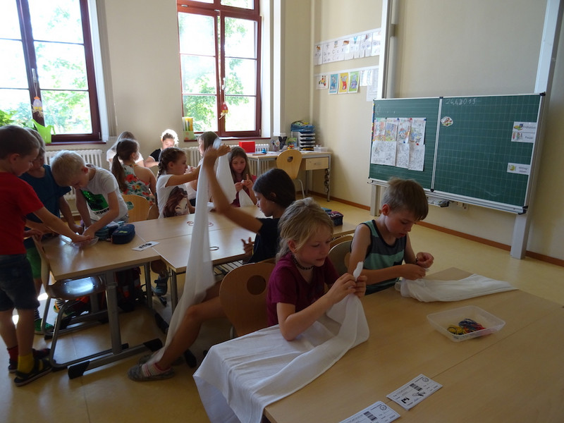 Die Kinder lernten Interessantes und Wissenswertes kennen und probierten vielerlei aus: Brot backen, Kerzen formen, Nähen, Schreiben mit der Feder, Sägen, mit Pfeil und Bogen schießen, Tanzen, mit Kräutern heilen .... An einem Tag erkundeten sie in Museen, im Kloster, in der Glaserei und in der INSEL Originale. Auf dem Mittelaltermarkt präsentierten dann alle Kurse ihre Ergebnisse. Ein gelungenes Fest bei Stockbrot, frischem Brot und Suppe über offenem Feuer.