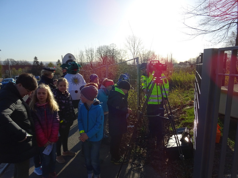 Gut eine Woche vor Beginn fand in unserer Schule die Vorbesprechung mit unseren Schülern und Polizisten statt. Früh um 7:00 Uhr startete die Aktion mit dem Aufbau des Lasergerätes. Die Schüler selbst hatten viel Spaß am Messen der Geschwindigkeit der vielen Autos, die in den gut eineinhalb Stunden auf der Saalhausener Straße vorbeifuhren. Die vorbildlichen Fahrer wurden von den Kindern mit einer Dankesurkunde belohnt.