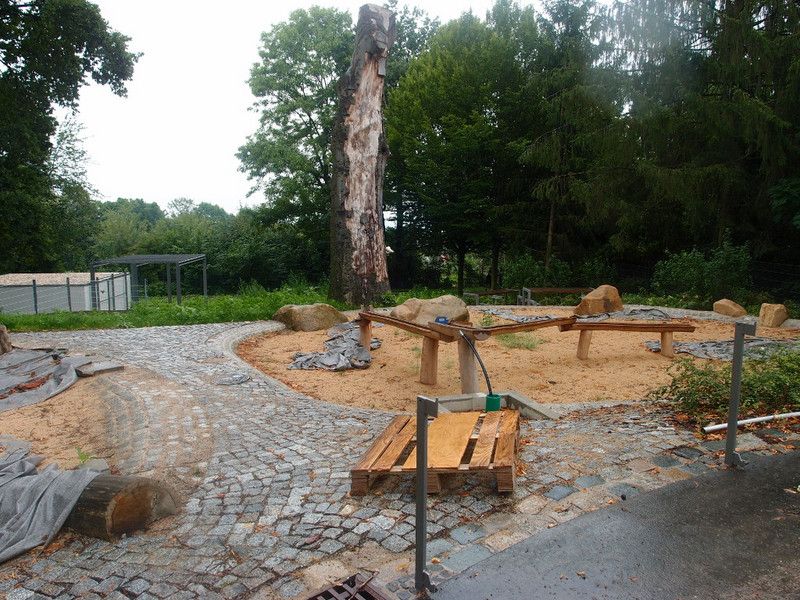 Am 03. August 2017 durfte das Schulteam sich die Baustelle anschauen. Im Inneren der Schule wird Putz aufgetragen, Schallschutz installiert, elektrische Leitungen verlegt .... In der Turhalle wird momentan der Prallschutz montiert, die Sanitärbereiche sind schon gefließt. Im Außengelände grünt es schon. Die Landschaftsgärtner montierten gerade die Hangrutsche. Das Dach von den Garagen für die Kinderfahrzeuge und Gartenwerkzeuge ist schon begrünt. Wir können es kaum erwarten!