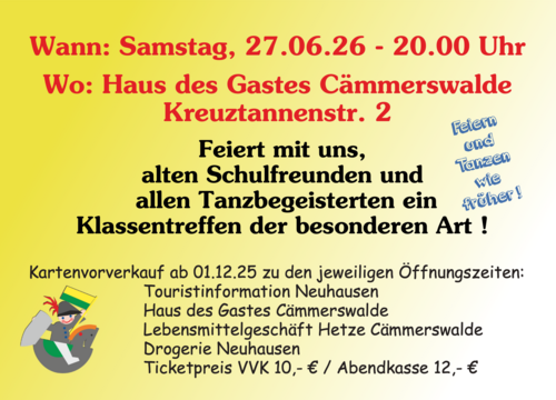 - 20 Uhr große öffentliche Klassentreffen - Party mit der Band „Saitenwechsel“ im Haus des Gastes Cämmerswalde