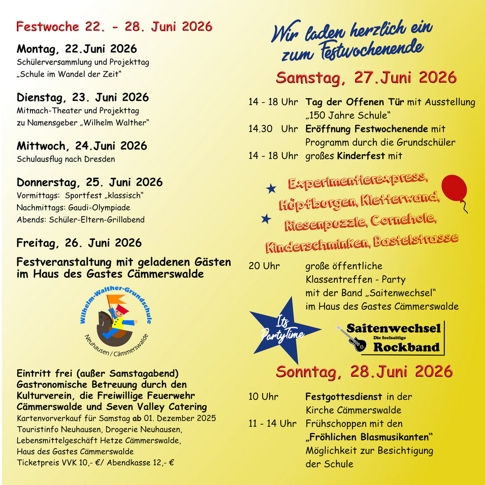 - 14.30 Uhr Eröffnung Festwochenende mit Programm durch die Grundschüler
