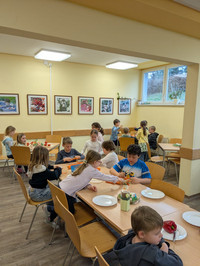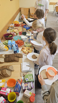 An den gedeckten Tischen genossen die Kinder anschließend ihr gemeinsames Frühstück. Es wurde probiert, gelacht und sich darüber ausgetauscht, was besonders gut schmeckt. Viele entdeckten dabei bestimmt auch neue Lieblingsspeisen.