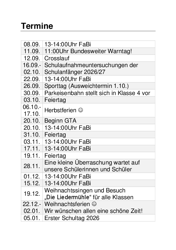 11.08.2025 | 1. Schultag im Schuljahr 2025/26 |