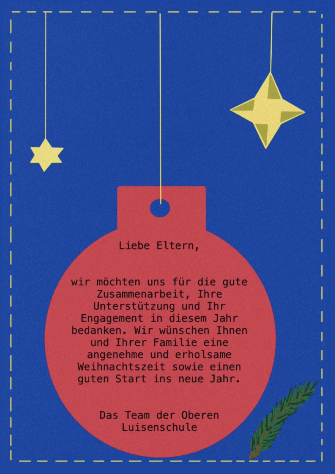 unsere Kinder haben auch in diesem Jahr am Adventskalender-Malwettbewerb von EINS-Energie teilgenommen. Alle teilnehmenden Einrichtungen erhalten für jedes Kind einen Adventskalender mit dem aktuellen Gewinnermotiv. Zu unserer großen Überraschung und Freude ging der Gewinn dieses Jahr an die Obere Luisenschule! Mit viel Vorbereitung und Geheimhaltung durch die informierten Eltern konnte am 28.11.2025 feierlich der Gewinn übergeben werden. Die Klasse 4a hat stellvertretend für unsere Schule den Gewinn übernommen und war wirklich überrascht! Im Schulhaus hängen jetzt alle eingereichten Motiv. Nehmen Sie sich ein bisschen Zeit und schauen Sie sich die tollen Werke unserer Kinder an!