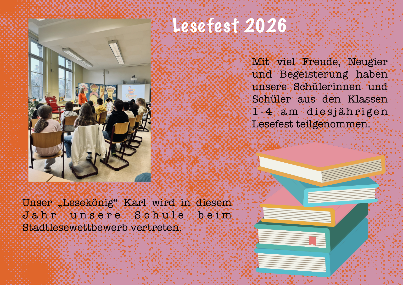 In den ersten Schulwochen war bereits viel los bei uns an der Oberen Luise. Das Werkstofftheater, Aqualino und Blicki blickt's waren zu Besuch. Der Crosslauf wurde erfolgreich durchgeführt und die 4ten Klassen waren bereits zur Fahrradprüfung. Die Erstklässler haben sich gut an die neuen Abläufe gewöhnt und neue Freundschaften geschlossen.