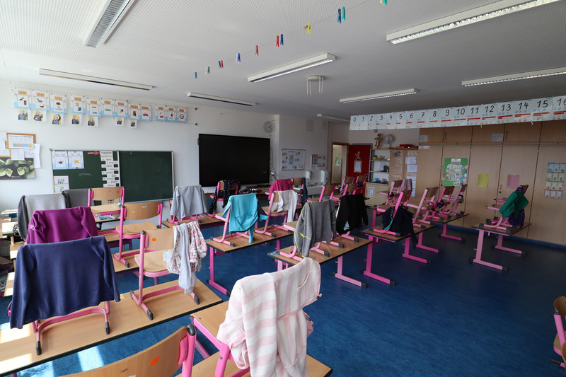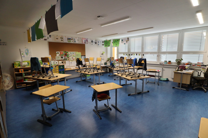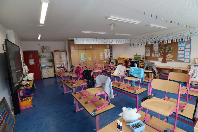 Klassenzimmer, Gang, Toiletten und Computerzimmer
