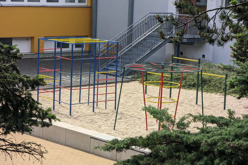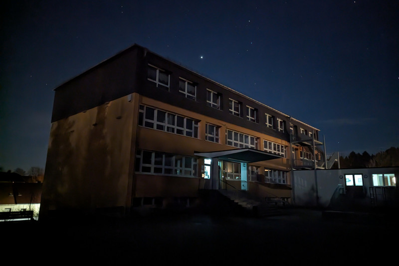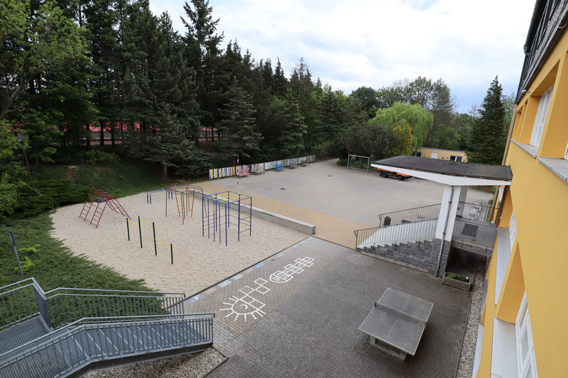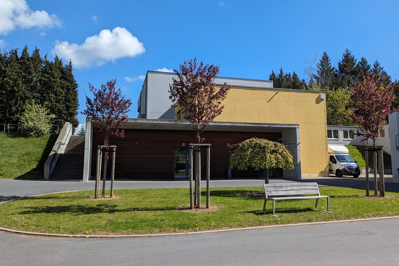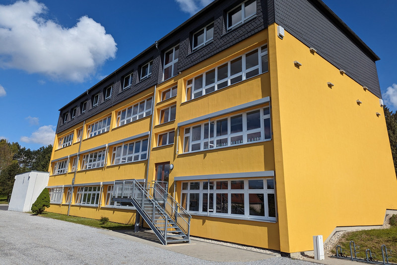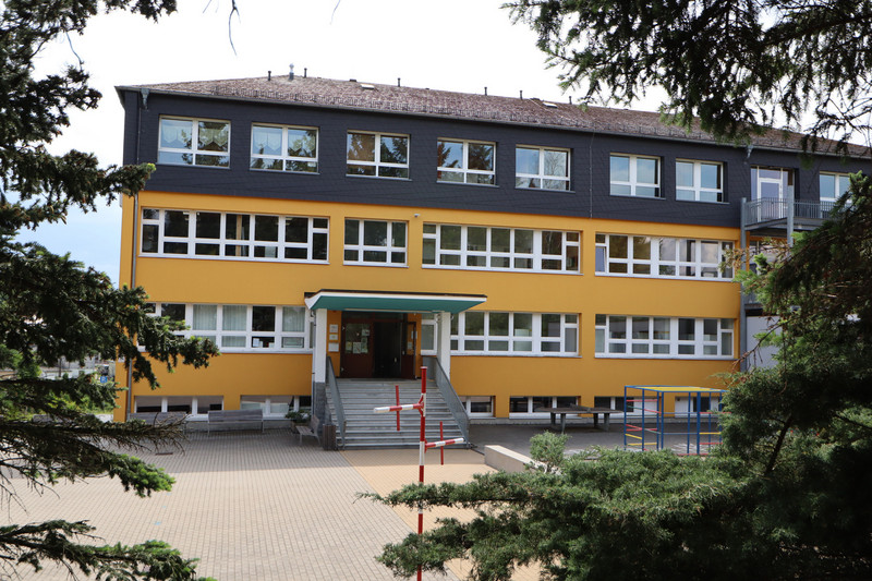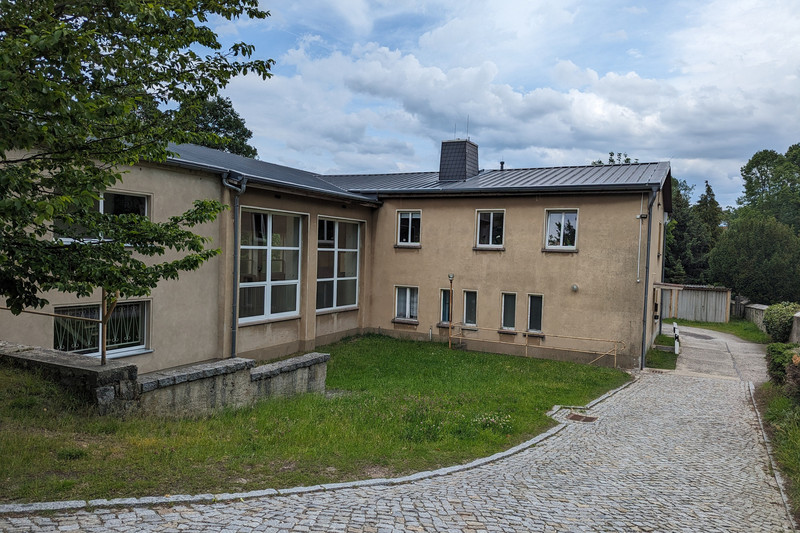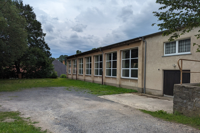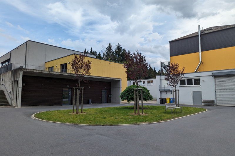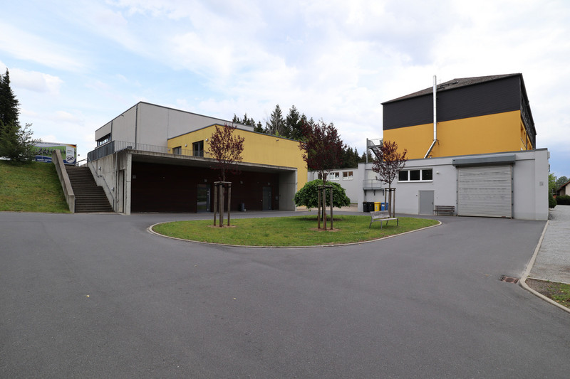 links Sport und Freizeitzentrum Oberlichtenau, rechts Schulhaus Rückseite