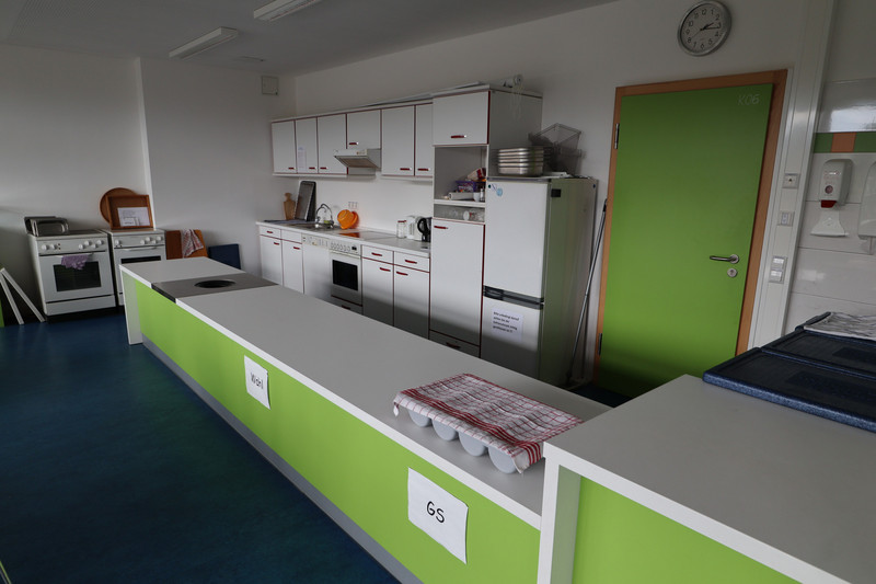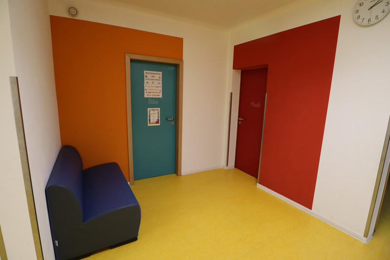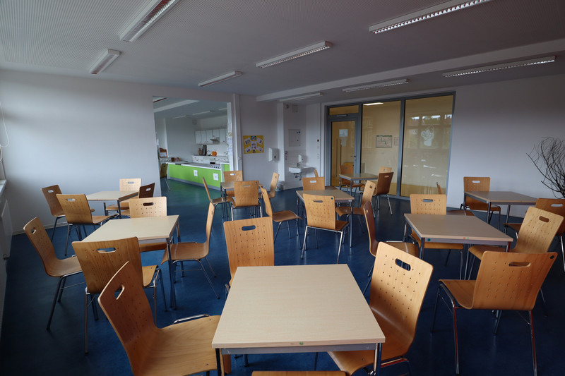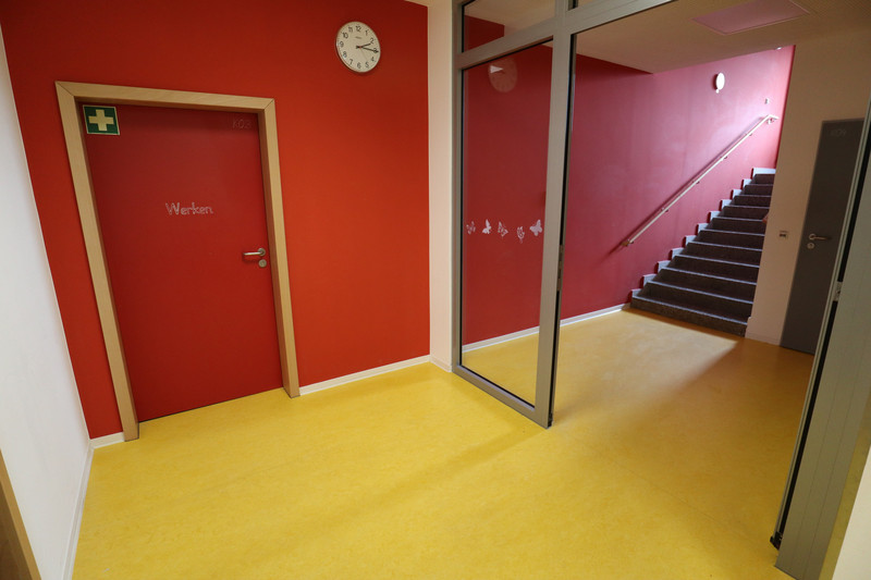 Speisesaal, Toiletten, Musikraum, Bibliothek, Werkenraum und Gang