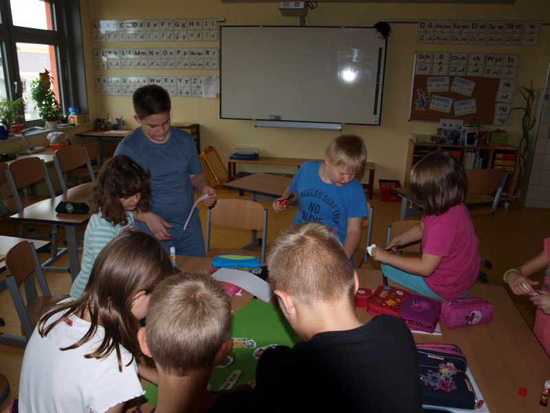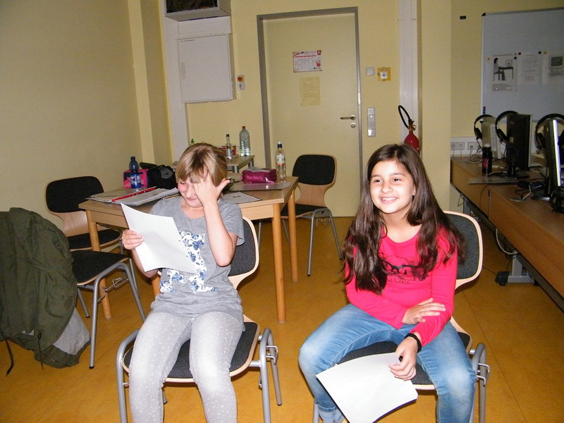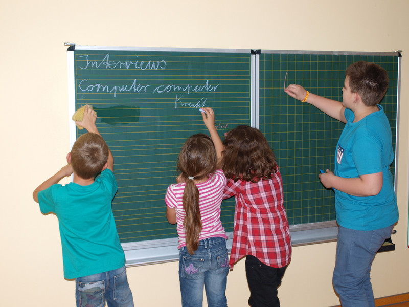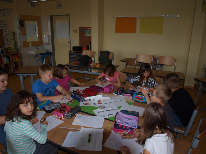 Für unsere ersten Interviews führten wir heute im Hort bei den Erziehern und Kindern Umfragen durch. Dafür bildeten wir 2er und 3er Gruppen. Wir wollten von Ihnen wissen, welche Fragen wir stellen sollen und schrieben uns diese dann auf.