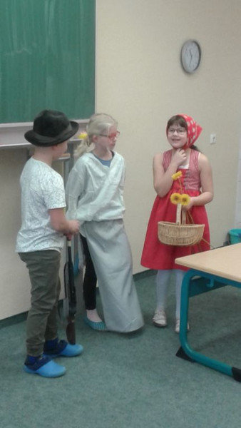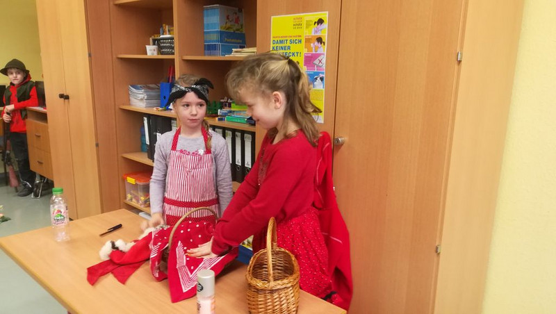 Dabei schlüpften die Jungen und Mädchen in Märchenfiguren und spielten z.B. Rotkäppchen und Frau Holle vor. Auch der Klasse 1 hat es sehr gut gefallen und es gab reichlich Applaus.
