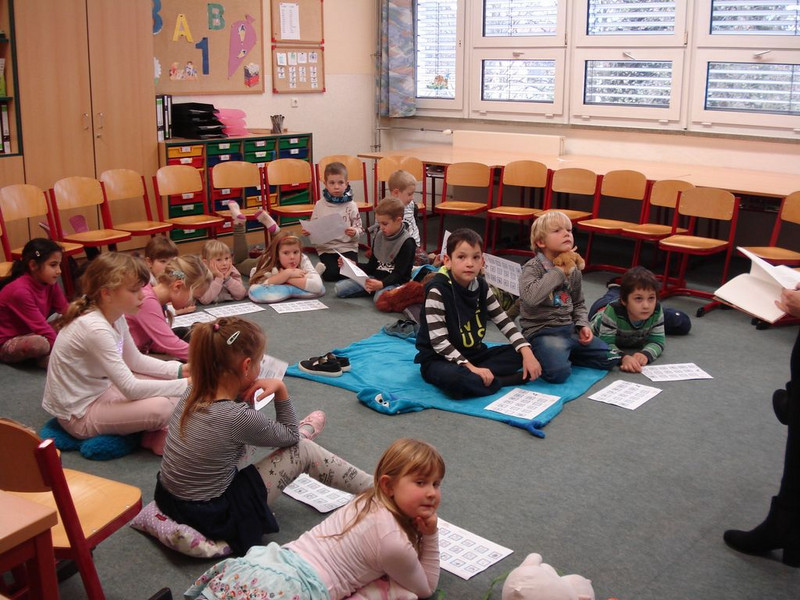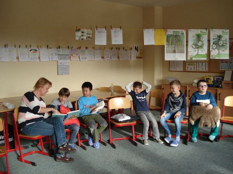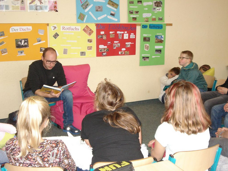 Am 15. November 2019 fand auch an unserer Schule der bundesweite Vorlesetag statt. Neun Gäste waren gekommen um vorzulesen. Sie lasen in unterschiedlichen Räumen zwei Unterrichtsstunden lang vor. Die Kinder lauschten für eine Geschichte, dann wechselten sie in ein anderes Zimmer. Dort hörten sie wieder eine ganz andere Geschichte von einem ganz anderen Menschen. Jedes Mal war es aufs Neue spannend. Denn es war für jeden etwas dabei: Märchen, Geschichten, Ausschnitte aus Kinderbüchern, lustige Sachen, Sportgeschichten, Nachdenkliches, gemeinsame Erlebnisse. Besonders gut gefiel allen „Der wilde Räuber Donnerpups“ oder das Märchen von „Däumelinchen“, „Max und Moritz“ und natürlich Fußballgeschichten wie zum Beispiel „Der Treffer des Jahres“. Auch spannende Tiergeschichten waren wieder dabei: „Die Zaubertiere“ oder „Dumme Ziege, blöde Gans“ und „Eine Maus, die Geige spielte“. Manch ein Schüler sagte hinterher, ihm hätte einfach alles gefallen. Auch wenn es für den einen oder anderen nicht so leicht ist einfach nur zuzuhören und gemeinsam dabei zu träumen. Doch das ist so schön!