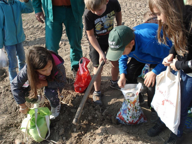 Wir, die Schüler der Klasse 3, fuhren am 24.09.2020 nach Schöna um uns anzuschauen wie die Kartoffelernte abläuft. Nach einer kleinen Wanderung auf das Feld unterhalb der Kaiserkrone erklärte uns Herr Hering die Maschine, die die Kartoffeln aus der Erde holt. Er hatte aber auch eine Hacke mitgebracht, um uns zu zeigen wie man das früher gemacht hat. Selbst mit den Händen...