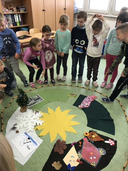Unsere Klasse 1 ist erste Klasse! Seit einem halben Jahr sind sie nun schon dabei fleißig Lesen, Schreiben, Rechnen und vieles mehr zu lernen. Und das tun sie mit großer Freude und Begeisterung. Gemeinsam überlegen sie wie ein Jahreskreis aussieht, suchen Wörter im Dunkeln oder aus Überraschungseiern, werfen Schneeballwörter, die sie anschließend lesen und schreiben üben. Ziffern schreiben, Formen erkennen und erste Aufgaben rechnen ist für unsere Erstklässler auch kein Problem. Lernen mit freier Partner- und Platzwahl, sich gegenseitig helfen können oder aber auch mal ganz alleine lernen macht großen Spaß und führt die Kinder in einer angenehmen Lernatmosphäre zum Lernerfolg. Dabei werden die mit den Kindern aufgestellten Regeln fast immer beachtet. Regelmäßiges reflektieren, ob und wie es funktioniert hat können die meisten Kinder auch schon recht gut. Falls mal etwas nicht gleich gelingt, dann ist die Klassenlehrerin Frau Weigel mit viel Geduld dabei jedem einzelnen Kind so zu helfen, dass es möglichst selbständig zu seinem Lernerfolg kommt.
