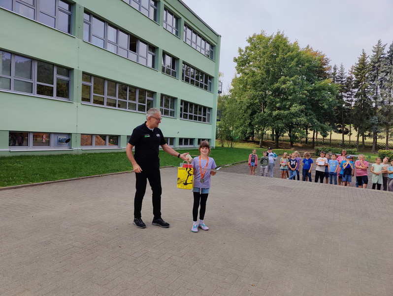 Der Sparkassen Festungslauf auf der Festung Königstein am 8. August 2025 endete für diese Schüler und Schülerinnen der Grundschule Papstdorf sehr erfogreich. Herr Dzikowski, der Organisator des Festungslaufes, ehrte sie und die teilnehmerstärkste Klasse 4 vor der gesamten Schülerschaft und übergab kleine Präsente. Wir gratulieren!