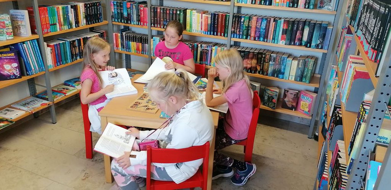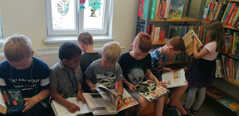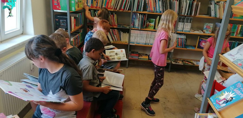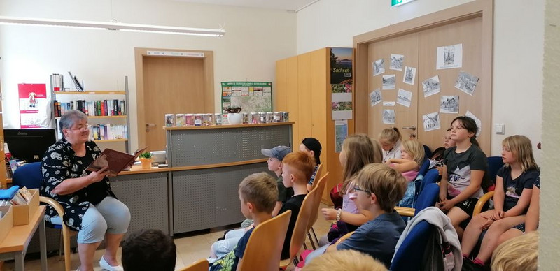 Unsere Erstklässler haben es geschafft, die Buchstaben zu kennen und sich Wörter und Sätze zu erlesen. Also machten sie sich auf die Suche nach spannender Ferienlektüre. So besuchte die Klasse 1 die Bibliothek in Bad Schandau. Frau Hille begrüßte alle mit einer Vorlesung, in der es darum ging, dass ein Buch gern ausgeliehen werden wollte.