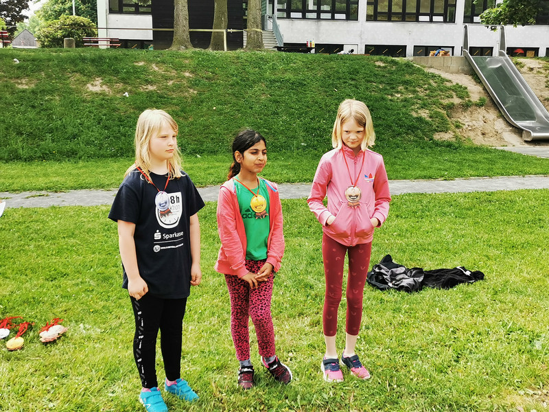 So hieß es beim diesjährige Sport- und Spielefest der Grundschule Papstdorf. Nach einer gemeinsamen Erwärmung durch die Mädchen der Klasse 4 und ihrem Lieblingstanz gab es pro Klasse einen Rundenlauf, der je nach Klassenstufe 1 bis 4 Runden betrag. Die schnellsten Läufer und Läuferinnen der Klassen erhielten eine Medaille.