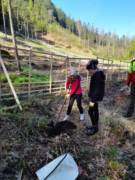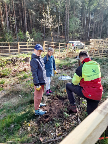 Dieses Thema haben wir gerade erst im Sachunterricht behandelt. Natürlich gibt es bei uns dazu nicht nur Theorie. Wir verbinden das Thema natürlich gleich mit praktischen Arbeiten. Deshalb trafen wir uns mit Frau Marie Ahnert und den Lehrlingen des Sachsenforstes im Suppelsgrund gleich hinter der Schule. Gemeinsam verbrachten wir einen wunderschönen Waldtag. Dabei griffen wir fleißig zur Forsthacke, machten Pflanzlöcher in der richtigen Tiefe und pflanzten Pfaffenhütchen, Hartriegel, Schneeball und Holzapfel. Wir erfuhren wie wichtig diese Büsche am Waldinnenrand für einige Tierarten und das Ökosystem „Wald“ sind. Tiere finden Nahrung und haben Möglichkeiten sich zu verstecken. Nach einer Stärkung gab es verschiedene Spiele zum Thema Wald. Wir hatten einen Riesenspaß und sind sehr stolz darauf für unseren Wald etwas Gutes getan zu haben. Vielen Dank an Frau Ahnert und die Lehrlinge des Sachsenforstes!