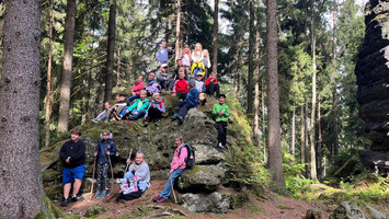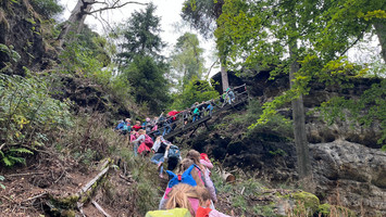 Auf malerischen Pfaden, vorbei an Pferdekoppeln, wanderte die Klasse 3 zum Katzstein.