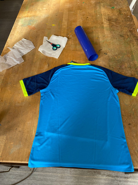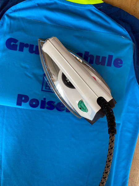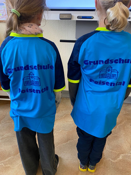 Dadurch war es möglich, 22 Sporttrikots und Plotterfolie zu kaufen. Das Design und das Beplottern haben unsere Schulassistentin Frau Leonhardt und unsere Referendarin Frau Schüttauf übernommen.