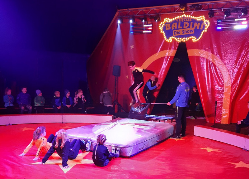 Zur Eröffnung unseres Festjahres zum 60- jährigen Schuljubiläum war der Zirkus „Baldini“ wieder zu Gast. Drei Tage lang wurde trainiert, um dann am Freitag, dem 7.10., zwei Aufführungen gestalten zu können. Die Kinder waren in Gruppen eingeteilt und übten sich im Jonglieren, im Trampolinspringen, im Drahtseilbalancieren und konnten ihre Ängste am Trapez oder bei der Leiterakrobatik überwinden. Lustig waren auch die quirligen Clowns. Herausgekommen sind zwei ganz tolle Shows, die alle Zuschauer begeistert verfolgen konnten. Unsere Schülerinnen und Schüler haben mit viel Disziplin und Durchhaltevermögen gearbeitet. Dafür an dieser Stelle noch einmal ein großes Lob. Auch die Lehrerinnen haben ein großes Lob verdient für ihre Feuershow. Da gehörte schon ein wenig Mut dazu. Ein ganz großes Lob und ein Dankeschön geht an dieser Stelle auch an die Zirkusmitarbeiter, die es sehr gut verstanden, unsere Kinder zu motivieren.