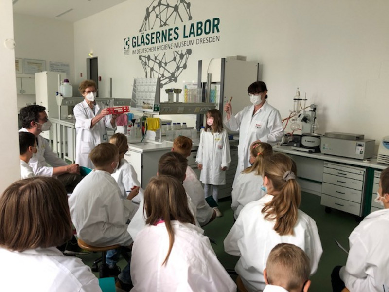 Die Klasse 3a ist am 02. Juni 2022 mit dem Reisebus nach Dresden gefahren. Dort haben wir das "Gläserne Labor" besucht. Als erstes haben wir gefrühstückt. Im Labor haben wir dann an sechs Stationen gearbeitet und experimentiert. Dort hat fast allen die Station 3 mit dem Tee am viel Spaß gemacht. Danach waren wir fertig mit Experimentieren und haben uns alle noch was mit unserem Taschengeld gekauft. Rückzu haben wir dann im Reisebus noch ein Stirnband bekommen und sind danach zur Schule gefahren.
