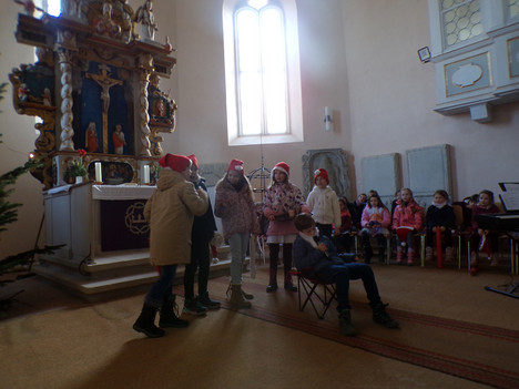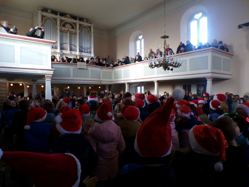 Mit diesem Lied eröffnete der Chor der Grundschule Priestewitz am 17. Dezember 2025 das erste Weihnachtssingen der Schule in der Kirche in Lenz. Eingeladen waren die Großeltern der jungen Sängerinnen und Sänger. Diese folgten der Einladung reichlich und so kam es, dass die Kirche bis auf den letzten Platz gefüllt war, einige Gäste mussten sogar stehen.