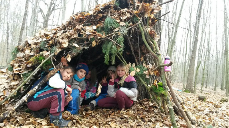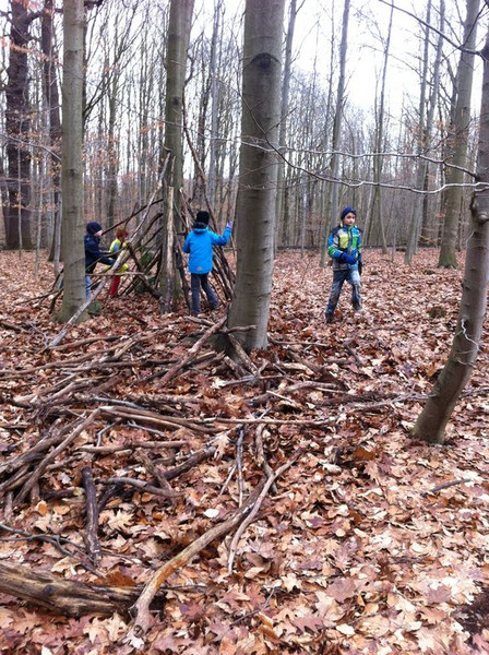 Wir verbrachten fast den ganzen Tag an der frischen Luft, spielten im SLH, wanderten mit dem Förster, erkundeten den Wald und wanderten nach Altenbach auf einen riesigen Spielplatz. Das Schönste aber war, dass wir uns am Dienstag im Nachbarwald Buden gebaut haben, die wir täglich besuchten, um sie zu verschönern oder um dort unser Vesper einzunehmen.