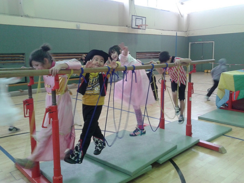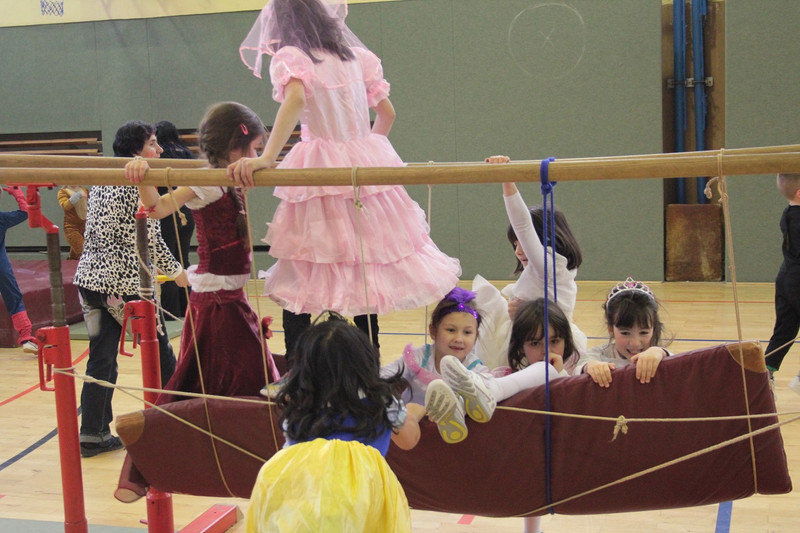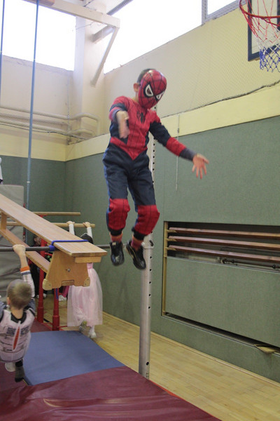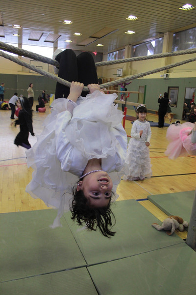 Mit viel Fantasie verkleideten sich die Schüler und Lehrer. Mit Musik und einer Polonaise ging es durchs ganze Schulhaus und in den bunt geschmückten Räumen wurde gespielt und gelacht. Es gab Pfannkuchen und erfrischende Getränke zur Stärkung. Auch in der Turnhalle war viel los. Unsere Sportlehrerinnen, Frau Loh und Frau Elger sowie Herr Brumme und unser Hausmeister Herr Lautenschläger hatten mit viel Ideenreichtum die Turnhalle in einen Hindernisparcour vorbereitet. Dort waren die Hexen, Ninjas, Gespenster, Cowboys, Zauberer, Polizisten, Star Wars - Ritter und sogar Prinzessinnen sportlich sehr aktiv.