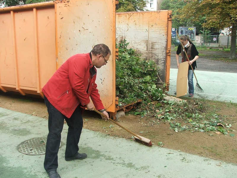 Zu einem Subbotnik hatte der Förderverein Schule und Hort am Rabet für den 26. September eingeladen, um die Außenanlagen des Schulgeländes auf Vordermann zu bringen. Es wurde ein voller Erfolg: Rund 40 Mütter und Väter, Schülerinnen und Schüler, Lehrerinnen und Lehrer, Horterzieherinnen und –erzieher und der Hausmeister kamen, und gemeinsam schafften sie eine ganze Menge: Hecken und Bäume wurden gestutzt, Laub geharkt und Müll gesammelt, Kinderfahrräder des Hortes gewartet, und im Schulgarten wurde umgegraben und Unkraut gejätet.