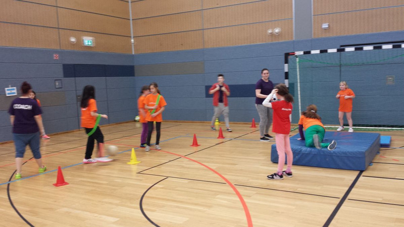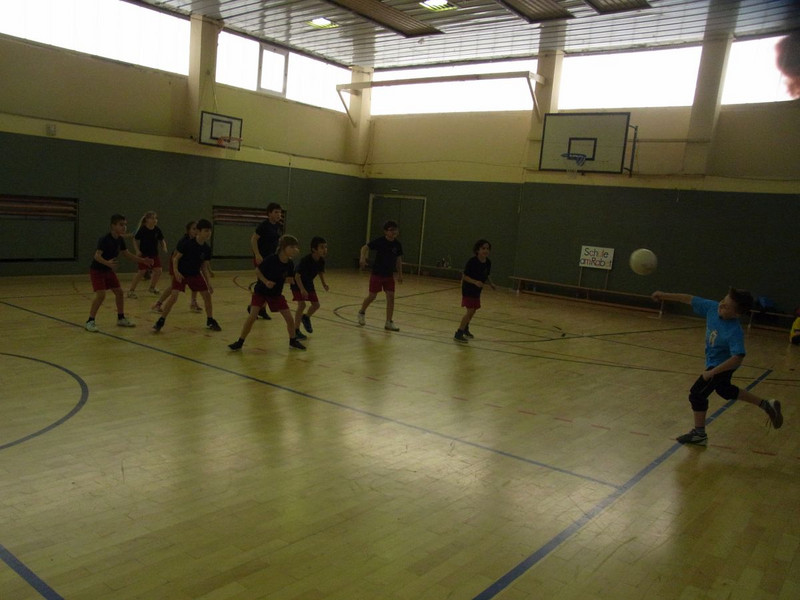 Ein bereits fester Bestandteil des GTA ist Rugby. Um noch mehr begeisterte Mitstreiter zu finden, hat Herr Müller, ein ehemaliger Rugby-Bundestrainer und Leiter der AG für die dritten Klassen je eine Demonstrationsstunde gehalten. Die einleitende Videosequenz versetzte alle in die richtige Stimmung, so dass die Schüler es kaum abwarten konnten den echten Rugby in Händen zu halten. Die Praxis war dann doch etwas schwieriger, da die ovale Form in unberechenbare Richtungen sprang, sobald sie den Boden berührte. Alle jagten mit viel Spaß dem Rugby hinterher und versuchten ihn zu fangen und im gegnerischen Tor zu versenken.