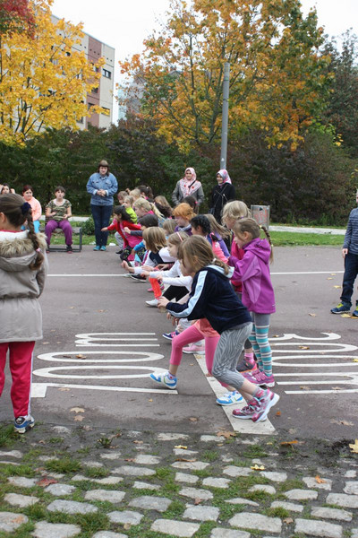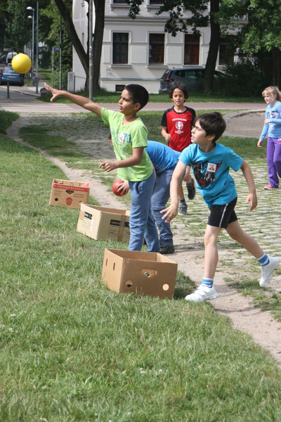 Ein Bus brachte 54 Kinder und 7 Erwachsene nach Berlin. An der Heinrich-Seidel-Grundschule traten mit 9 Mannschaften an 9 Stationen in den sportlichen Vergleich mit fünf weiteren Grundschulen.
