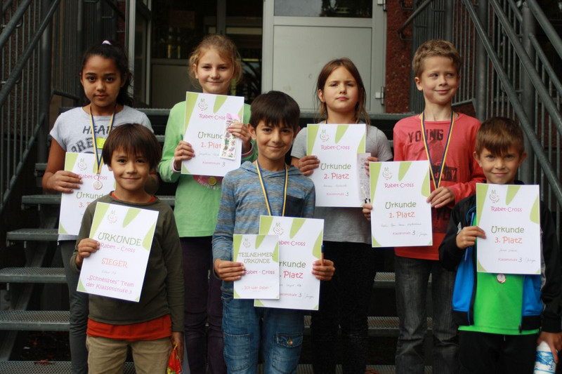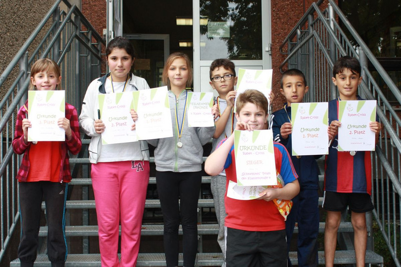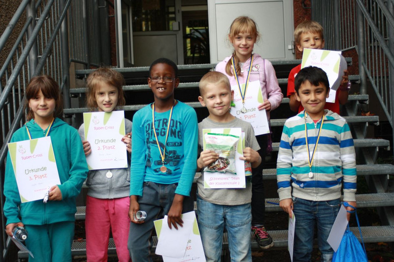Am letzten Schultag vor den Ferien war es wieder soweit, der 5. Crosslauf am Rabet stand vor der Tür. Vorab standen die Zeichen nicht gut, ungünstige Wetterprognose und hoher Personalausfall haben den Crosslauf bis zum letzten Tag in Frage gestellt. Doch viele zusätzliche Kräfte wie Unterrichtshilfen, Schulbegleiter, Horterzieher und Eltern sind unserer Bitte um Unterstützung gefolgt. Auch das Wetter hat uns dann doch nicht im Stich gelassen, so dass der Cross planmäßig durchgeführt werden konnte und wieder ein voller Erfolg wurde. Jeder Aktive erhielt eine Teilnehmerurkunde und die schnellsten Jungen und Mädchen wurden mit einer Medaille und kleinen Preisen geehrt. Zum ersten Mal kamen Urkunden mit unserem neuen Schullogo zum Einsatz. Als Gäste konnten wir die Kita Eisenbahnstraße mit 25 Vorschulkindern begrüßen, die traditionell an dieser Veranstaltung teilnimmt. Die Kita Konradstraße musste leider kurzfristig ihr Kommen absagen. Ein großes Dankeschön an alle Beteiligten die zum Gelingen beigetragen haben.