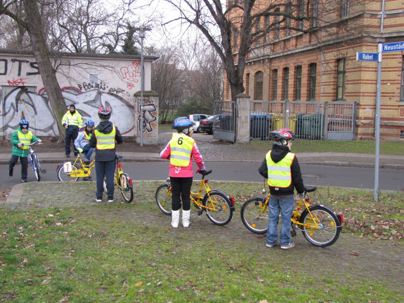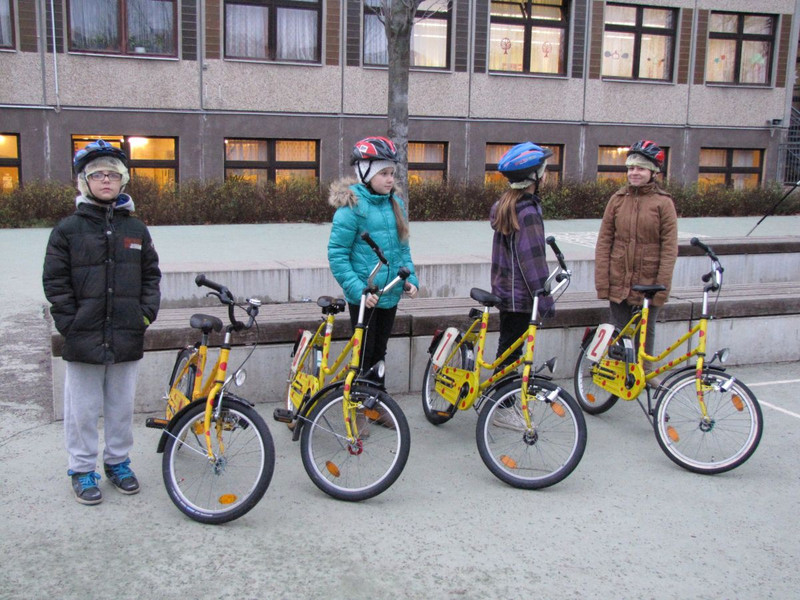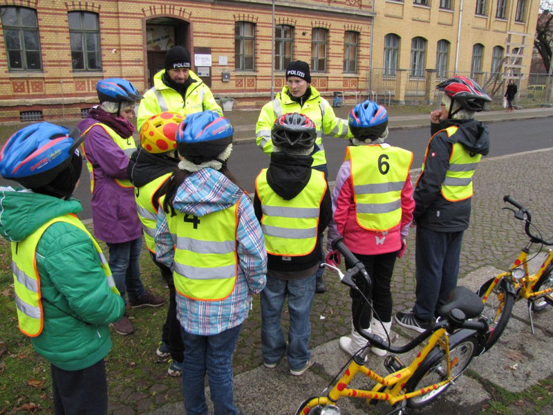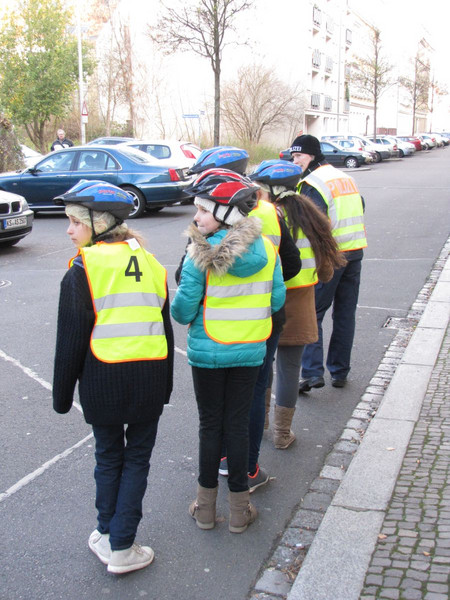 Die Polizei führte vom 19.11. - 26.11.15 mit den Kindern der 4. Klassen die Fahrradausbildung durch. Zuerst wurde geschaut, ob die Kinder sicher fahren können. Danach ging es gut geschützt mit Helm und Sicherheitsweste auf die richtige Straße, das Gelernte umzusetzen. Am zweiten Tag der Ausbildung waren die Vorfahrtsregeln dran. Die Schüler übten das Linksabbiegen und die Rechts-vor-links-Regelung.