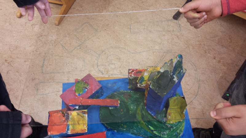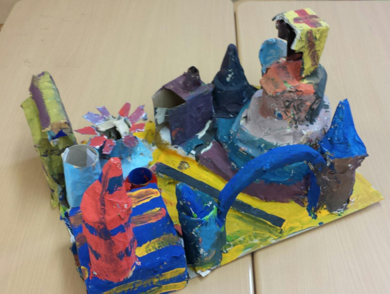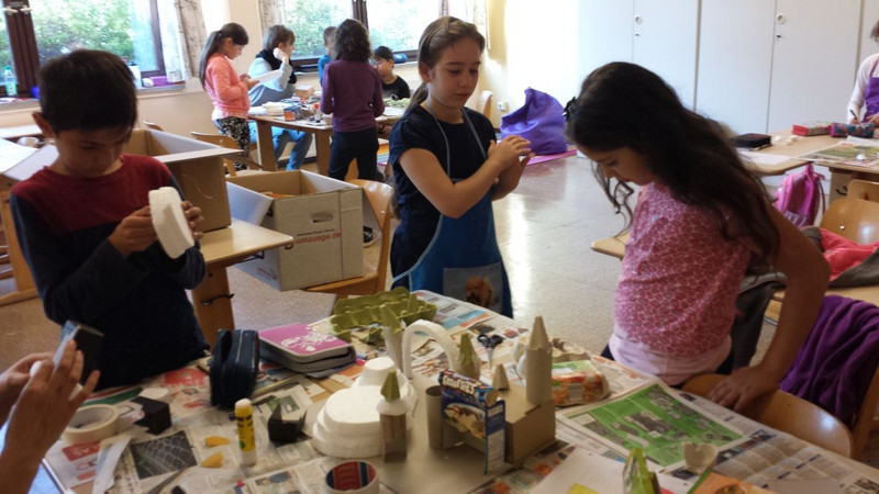 Stadtmodell zu einem 2D Stadtplan wird. Im Kunstunterricht gestalteten die Schüler in Kleingruppen