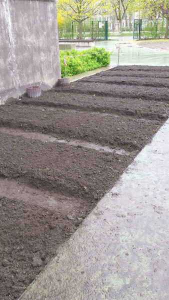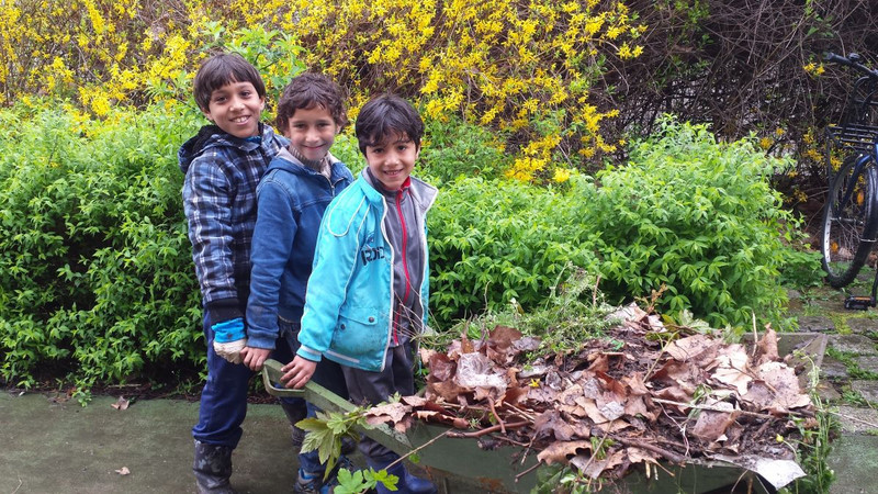Viele fleißige Helfer: Eltern, Lehrer, Erzieher, Schulsozialarbeiter und Schüler ließen sich trotz gelegentlichem Regen nicht davon abhalten, im Schulgarten und im Schulgelände zu arbeiten. Es wurde viel Unkraut gezupft, um die Beete des Schulgartens für den Unterricht vorzubereiten.