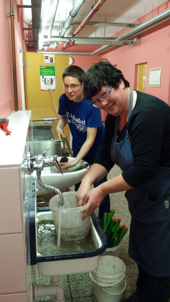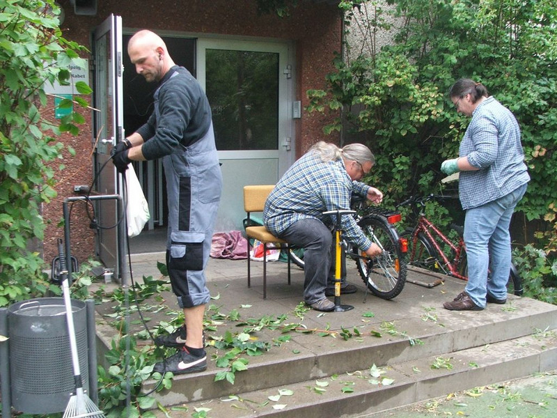Selbst um die Müllcontainer und vor dem Zaun wurde für Sauberkeit und den Rückschnitt der Pflanzen gesorgt. Die Fahrräder des Hortes sind jetzt wieder einsatzbereit. Eine Wand im Speiseraum bekam einen neuen Anstrich und zu einem späteren Zeitpunkt werden dort von Schülern gestaltete große Bilder angebracht.