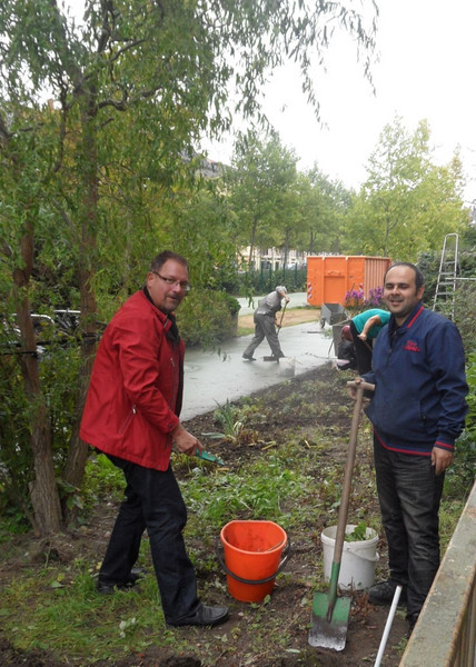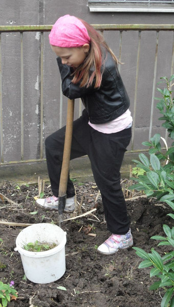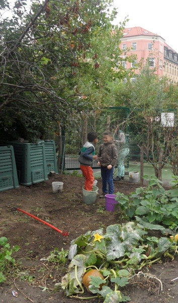 Vielen Dank an alle Freiwilligen (manche von ihnen hatten ihr privates Gartenwerkzeug mitgebracht), an Vater Herrn Lange, der den Einsatz vorbereitet hatte, und an alle, die sich um die Verpflegung in den Pausen kümmerten. Als kulinarische Höhepunkte seien noch der selbstgebackene Apfelkuchen von Hortleiterin Frau Schlecht und der Bio-Kohlrabi aus dem Garten von Erzieherin Frau Czeczlinski erwähnt.