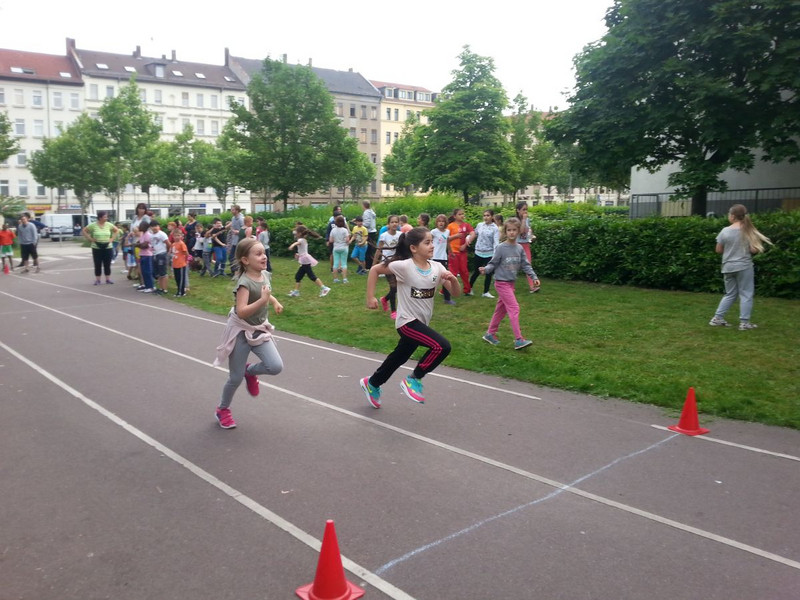 Weiter geht’s am 23.04. mit dem Minimarathon der Leipziger Stadtwerke auf dem Gelände der ehemaligen DHfK. Wir starten mit je 10 Kindern in 4 Teams aus Klasse 1-4. Über 30 Schulen wetteifern gegeneinander. Als Prämie erhält jede Schule einen Sport-Thieme Gutschein im Wert von 150,00 €. Viele Lehrer und Horterzieher sind an diesem Tag unterstützend dabei. Wir freuen uns auch über jeden Zuschauer und Helfer aus den Reihen der Eltern.