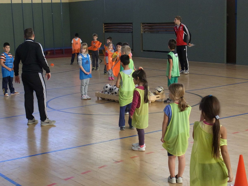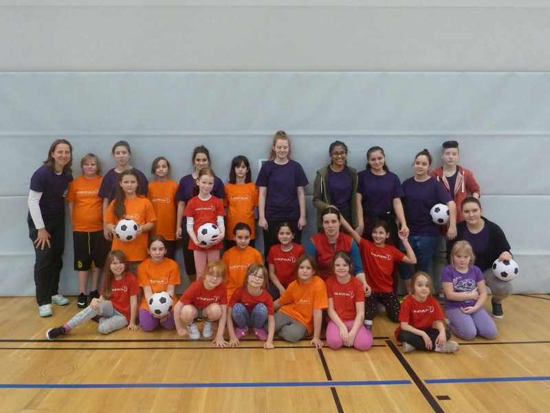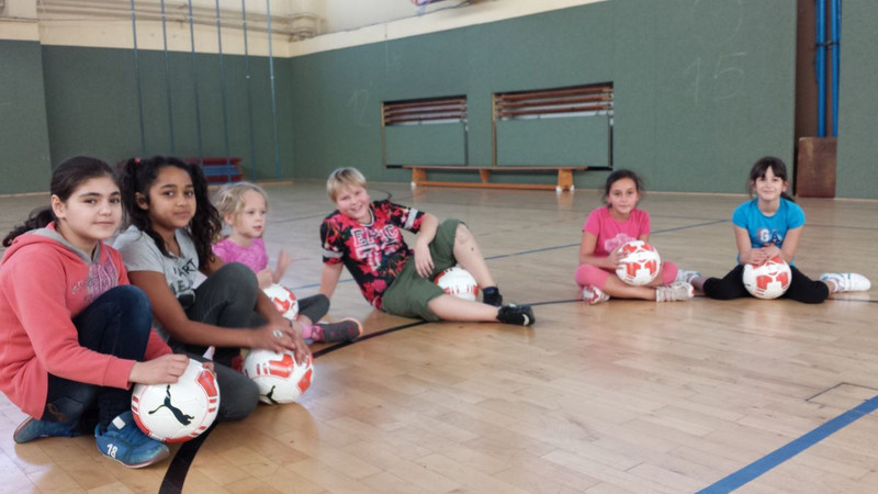 Gemeinsam trainieren seit 3 Wochen Mädchen der Klassen 1-4 erste Techniken des Fußballes. Die Anzahl der teilnehmenden Mädchen wächst mit jeder Woche stetig. Gemeinsam absolvieren die Mädchen auch erste Trainingsspiele, um am Ende des Schuljahres an einem richtigen Turnier teilnehmen zu können.