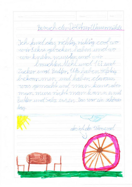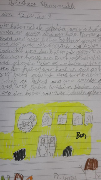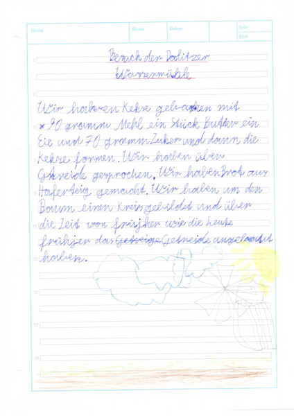 Das Erlebnis haben die Kinder der 3b in einem kleinen Bericht festgehalten. Nach langem Überarbeiten, Verbessern, Korrigieren und Abschreiben kamen dann schöne Berichte heraus. Eine kleine Auswahl an Texten gibt es hier zu lesen.