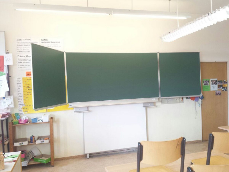 Während der Osterferien war es nicht still in der Schule. Handwerker bohrten im Beton und trennten Metallteile. Fünfzehn Klassenzimmer erhielten neue Tafeln. Die alten Tafeln stammten noch aus der Erbauungszeit der Schule und waren über dreißig Jahre alt. Mit großer Freunde wurden nun die neuen Tafeln in Benutzung genommen.