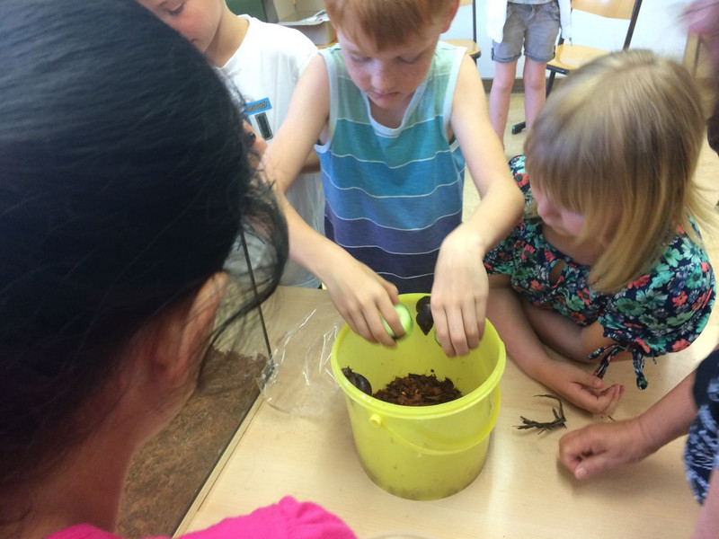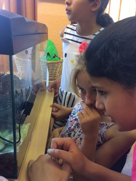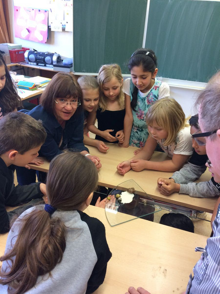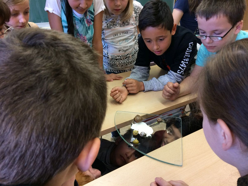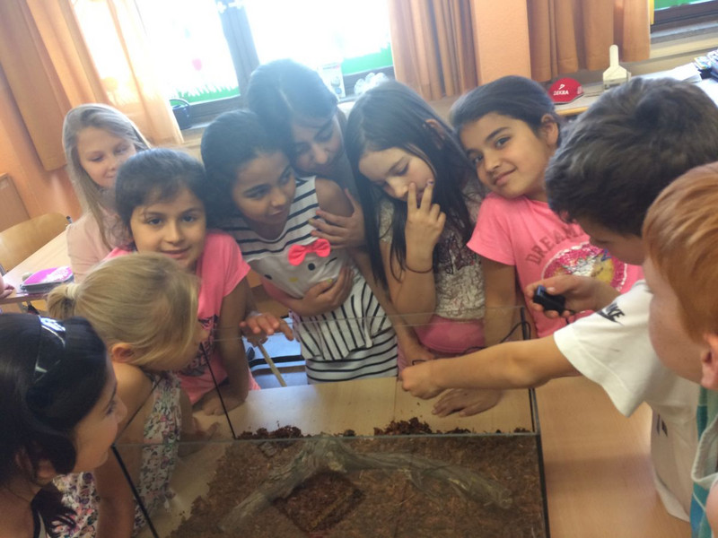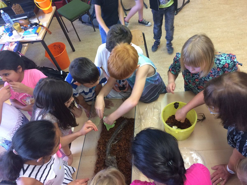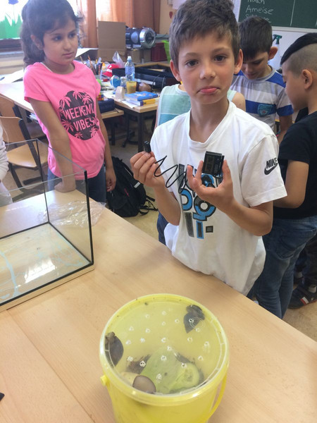Nachdem in den letzten Monaten der Forscherdrang der Schüler der Klasse 3c mit verschiedenen Projekten um und in der Natur geweckt wurde, startete am 23.05.2018 das erste Langzeitprojekt. An diesem Tag zogen drei Achatschnecken (Achatina Fulica) ins Klassenzimmer der 3c ein. Nachdem die Kinder mit viel Freude das neue Schneckenheim eingerichtet haben, machten sie sich daran, die Lebens - und Fressgewohnheiten zu erkunden. Es wurde auch gleich ein Schneckendienst eingerichtet, der sich um das Wohl der Kleinen kümmern muss. Das Verantwortungsbewusstsein der Schüler ist rührend. Jeder achtet darauf, dass stets genügend Nahrung vorhanden ist und die Temperatur sowie die Luftfeuchtigkeit stimmen. Am 24. wurden die 3 Kleinen mit Namen versehen. Sie heißen Gabi, Tom und Markus. Angedacht ist, dass es ein Wanderprojekt werden soll, das an die nachfolgenden Klassen weitergegeben wird. Möglich wurde dies zum einen durch die finanzielle Unterstützung des Fördervereins sowie des Engagements von Frau Günther und Herrn Schoener. Danke auch an Frau Schlecht, welche den Anstoß zu diesem Projekt gab.