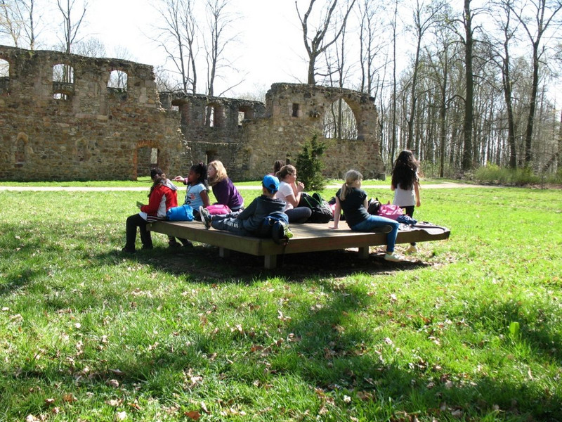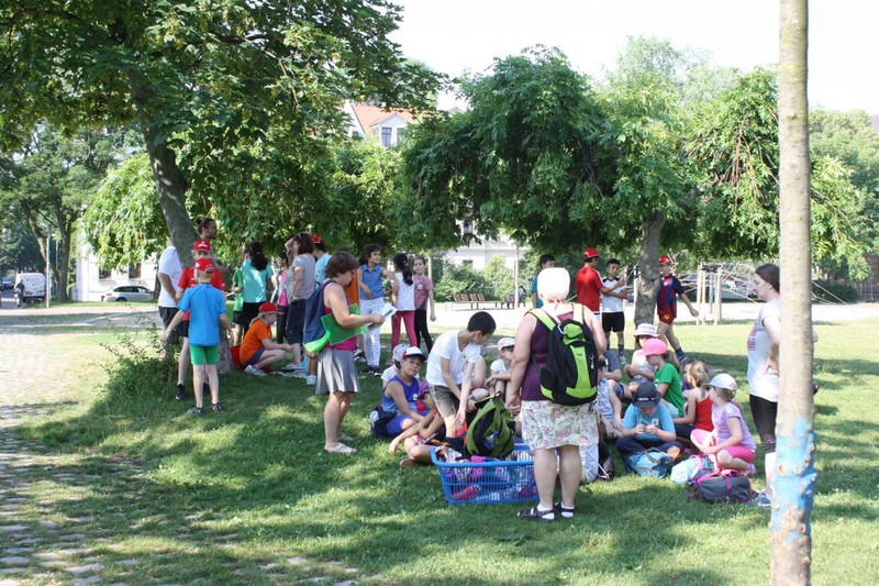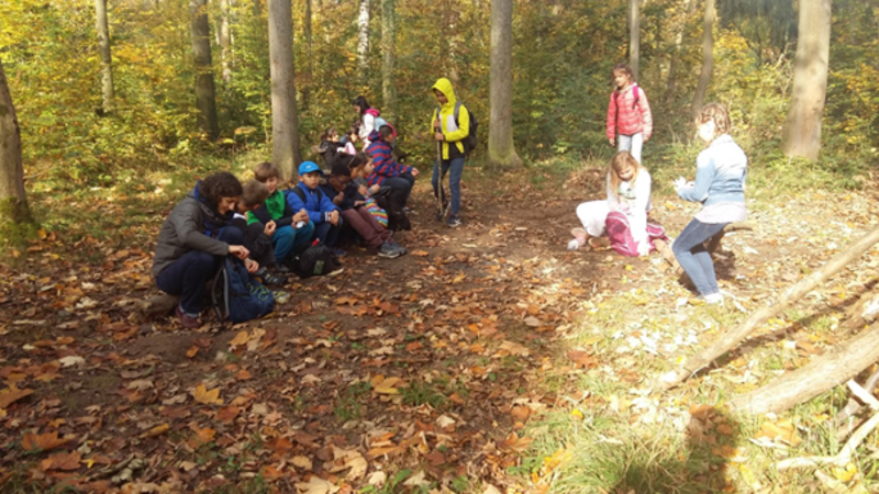 Über große und kleine sonnige Wege ging es dann weiter durch den Auwald bis zur Straßenbahnhaltestelle der Linie 3, vorbei an Wildschweinen, versteckten selbstgebauten Hütten und einem Picknickplatz unter bunten Laubbäumen. Etwas müde aber fröhlich kamen wir wieder an der Schule an.
