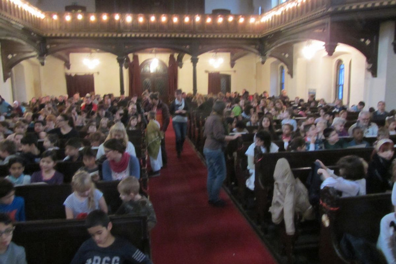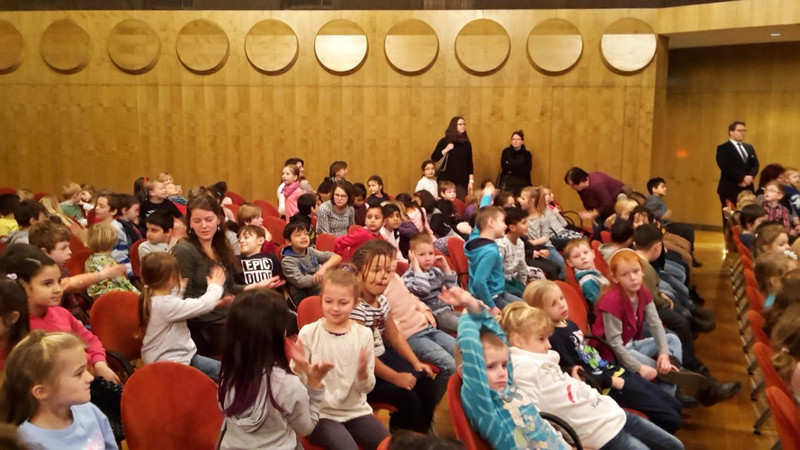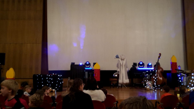 Die ersten Klassen besuchten im Gewandhaus das Schülerkonzert "Vier Kerzen". Unterstützt von einer Band mit Keyboard, Kontrabass und Schlagzeug wurden viele neue Weihnachts- und Winterlieder gelernt. So wurden Lieder über Väterchen Frost, den alten Mann Dezember, und die vier Kerzen gesungen.